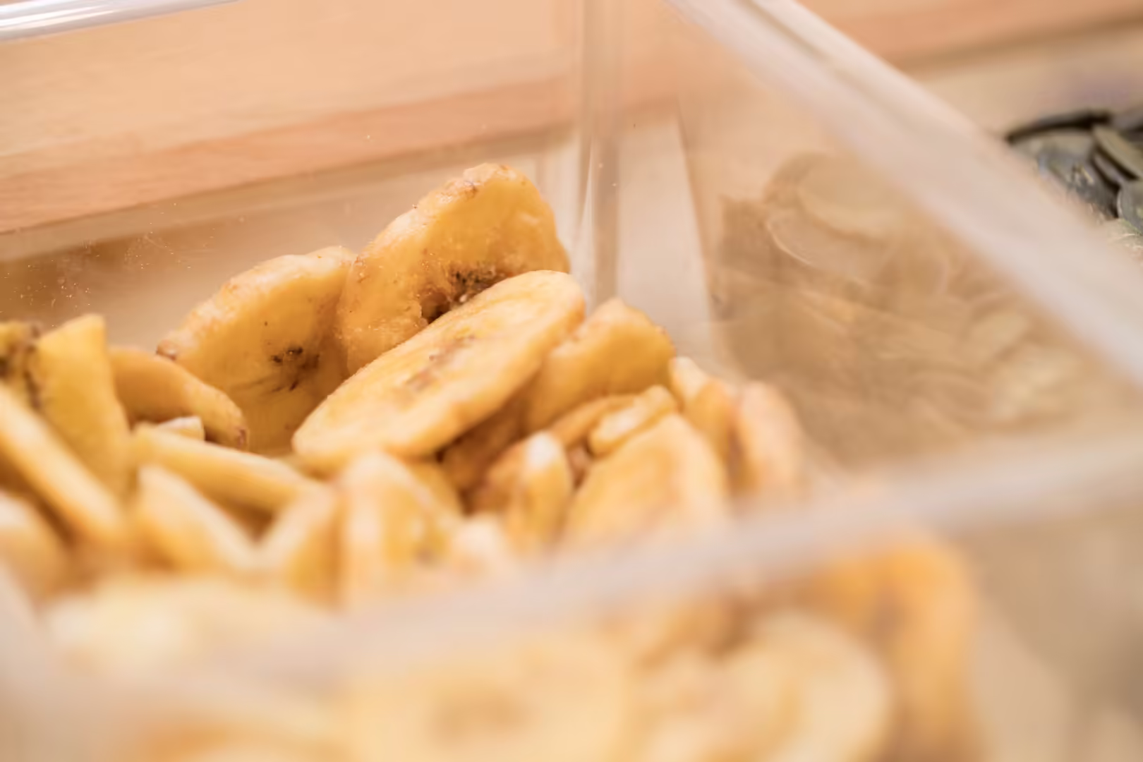 Neben einem täglich frisch geschnittenen Obstsalat finden Sie verschiedene Müslisorten wie Schoko-Müsli, Haferflocken und Cornflakes sowie Toppings wie Kürbis- und Sonnenblumenkerne oder getrocknete Bananen.
