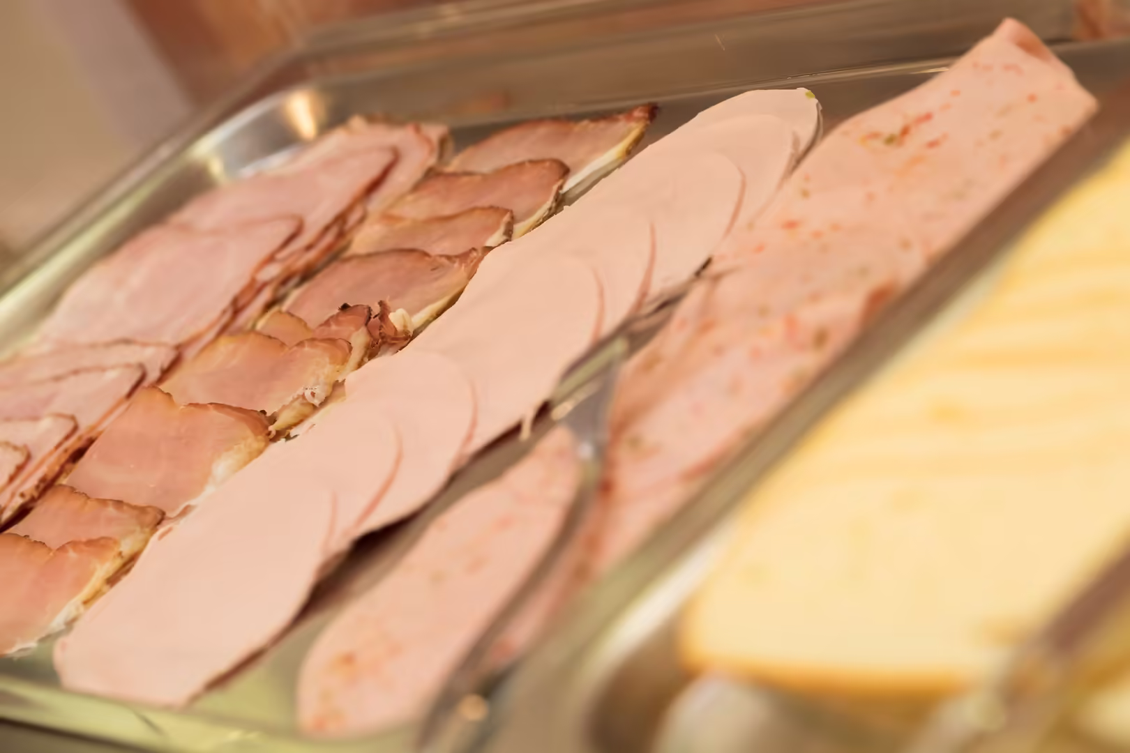 Ihnen steht eine große Auswahl an Marmeladen, Honig, Nutella, diversen Leberwurst-Aufstrichen sowie Butter und Margarine zur Verfügung. Außerdem bieten wir verschiedene Wurst- und Käsesorten sowie frisches Gemüse wie Gurken, Tomaten und Paprika.